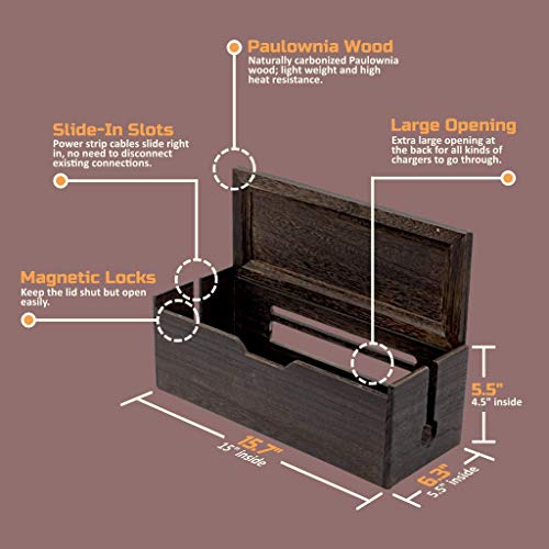 Christolab - صندوق إدارة الكابلات من الخشب الصلب، سلك كربوني طبيعي ومنظم شريط الطاقة