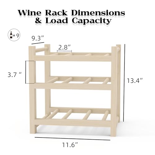 Haihomebest - رف خشبي صلب مكون من 9 زجاجات و3 رفوف من هوتن، رف دولاب تخزين مشروبات قوي ومتين للمطبخ وسطح الطاولة وخزانة المؤن والمنزل وديكور الغرفة والقبو