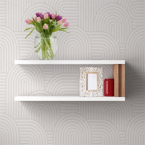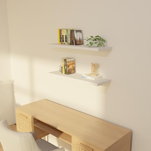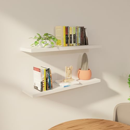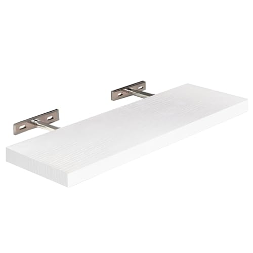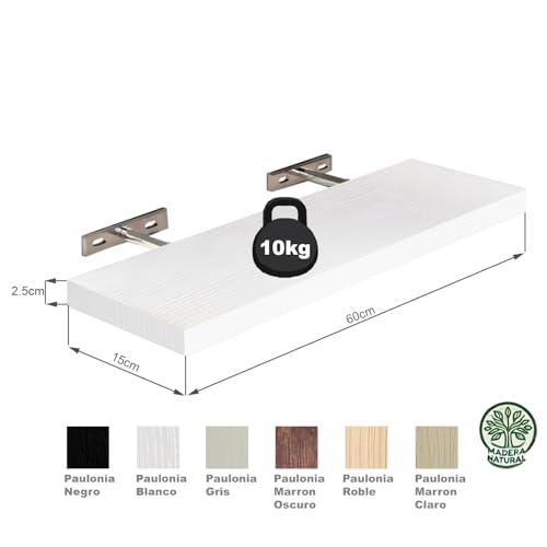 SolidRobust - رف حائط من خشب الباولونيا من سوليد روبست، رف حائط عائم متين صلب، رف حائط خشبي للمنزل والمكتب، (أبيض باولونيا، مقاس 15 × 60 × 2.5 سم)