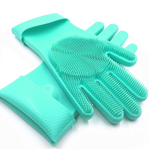 solidscrub - جوانتي سيليكون سحري بفرش تنظيف الاطباق وغسيل المواعين وتنظيف المطبخ والسيارة والعناية بالحيوانات الاليفة من سوليد سكراب | زوج واحد، 2 جوانتي (امتعدد الالوان)