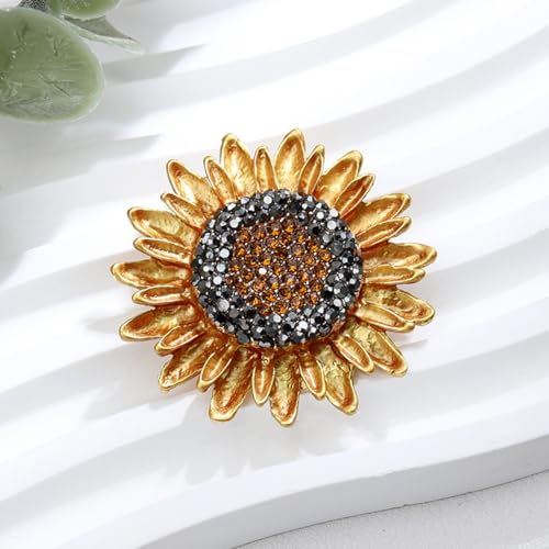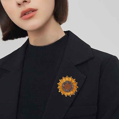 Solighter - Rhinestone Sunflower Brooch for Women Sparkling Crystal Flower Lapel Pin Party Jewelry for Blazer, Dress, Scarf, Hat