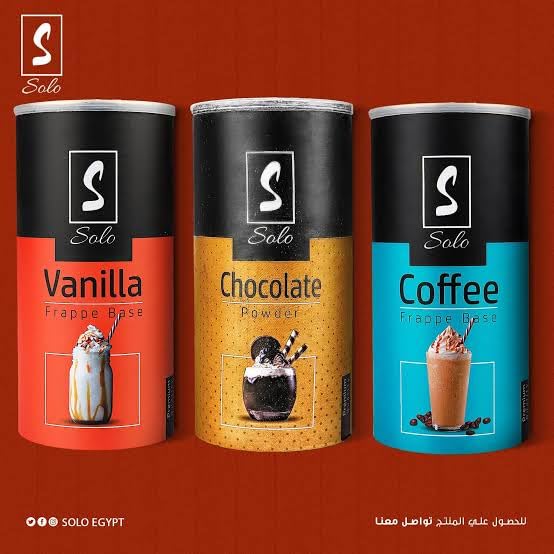 - قاعدة فرابيه بنكهة القهوة: مسحوق فرابيه من سولو بنكهة القهوة الغنية لتحضير مشروبات القهوة المثلجة اللذيذة في المنزل أو المقهى