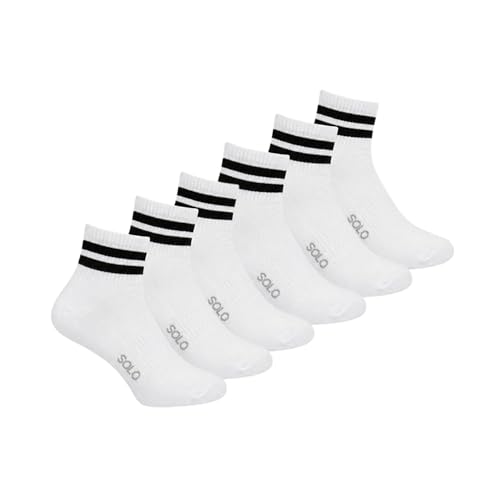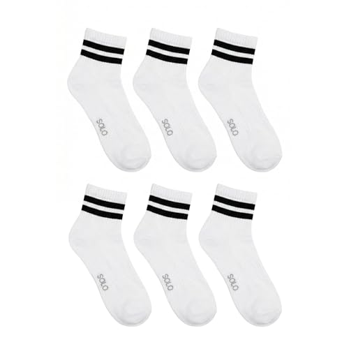 SOLO - سولو جوارب بطول الكاحل من القطن، ابيض مع خطوط سوداء، عبوة من 6 قطع، نمط رياضي