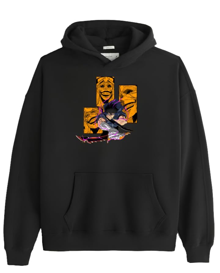 Generic - سويت شيرت بغطاء للرأس سولو ليفلينج أسود بشخصية سونغ جينوو 5