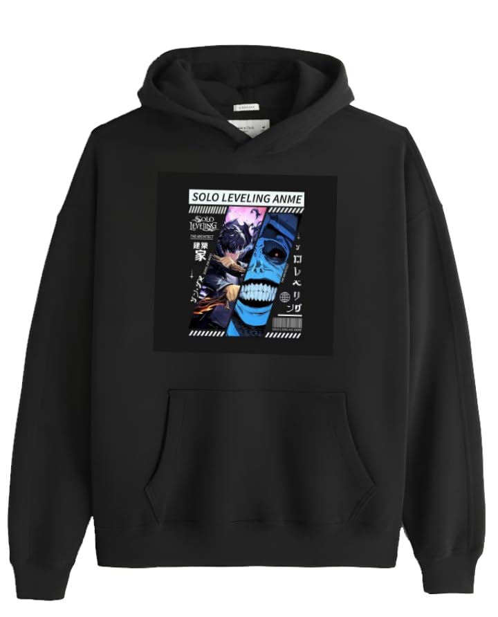 Generic - سويت شيرت بغطاء للرأس بتصميم شخصية سونج جينوو 9 من انيمي سولو ليفلينج، لون أسود