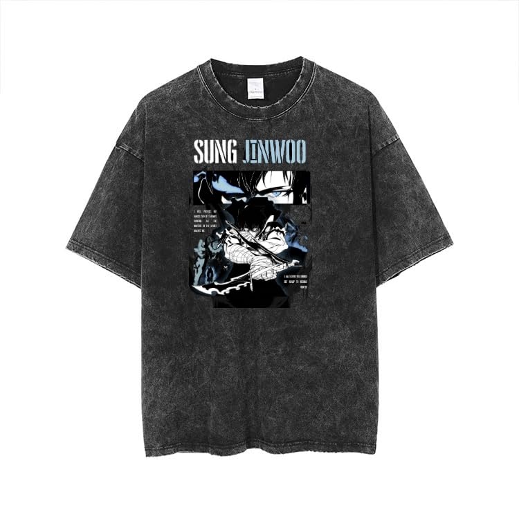 Generic - تيشيرت سولو ليفيلينج بلون رمادي حمضي مغسول Sung Jinwoo 2