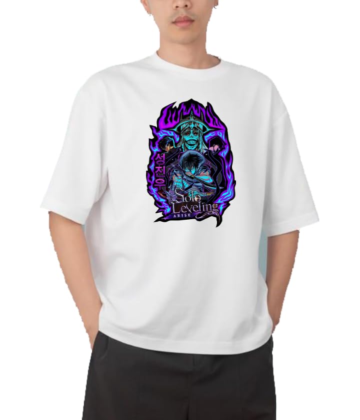 Generic - تيشيرت سولو ليفلينج وايت اسيد رمادي Sung Jinwoo 3