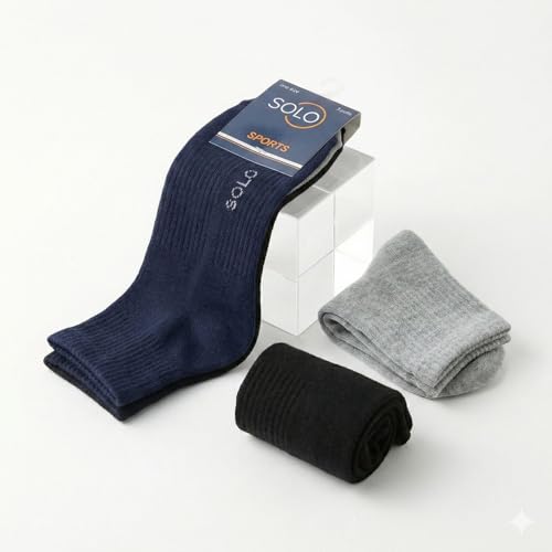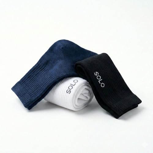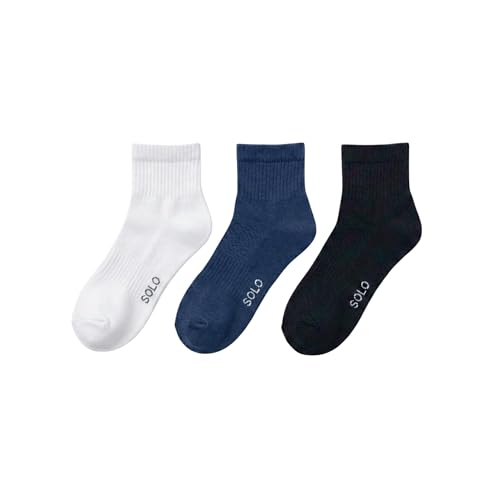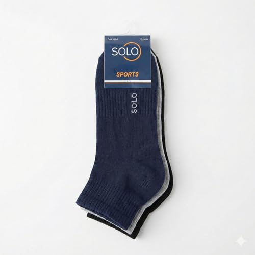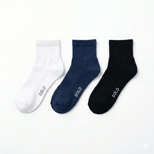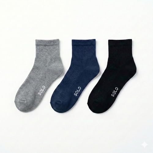 SOLO - سولو جوارب رياضية بطول الكاحل للرجال، عبوة من 3 قطع، الوان اساسية، قطن مضلع (روجر)