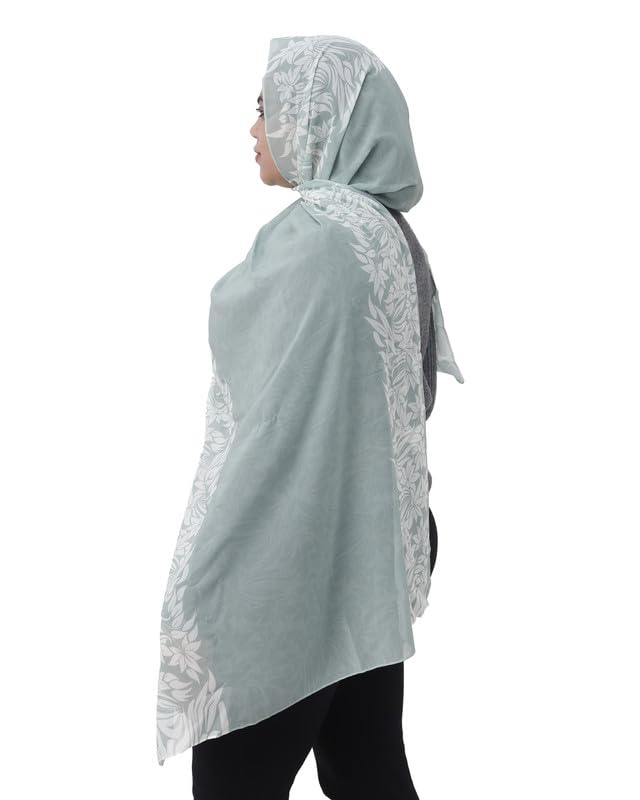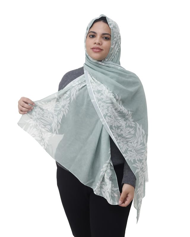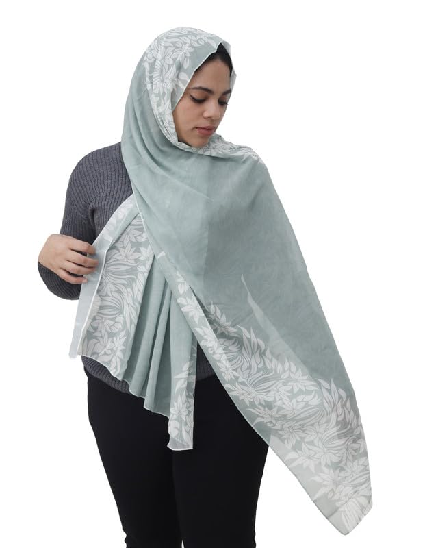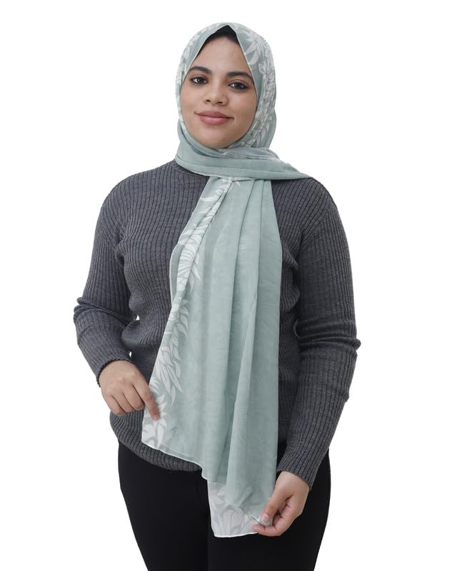 SOLY - سكارف كريب شيفون مطبوع خفيف الوزن للنساء، شال حجاب مقاس 190 × 70 سم - اخضر مينت EZ01021