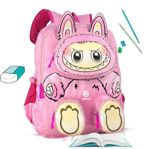 SOMUCH - شنطة ظهر بتصميم كرتوني للبنات من سومتش، شنطة مدرسية لطيفة بلون زهري بتصميم شخصيات ثلاثية الابعاد، خفيفة الوزن وواسعة للكتب والوجبات الخفيفة والالعاب | مادة متينة مقاومة للماء | مثالية لرياض الاطفال