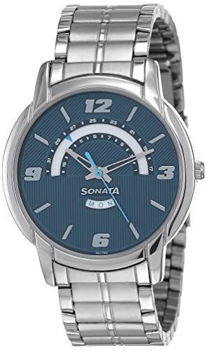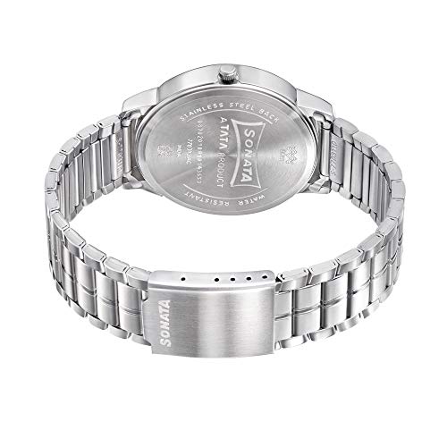 Sonata - ساعة انالوج بعقارب بسوار معدن ابيض للرجال 77031SM07 من سوناتا