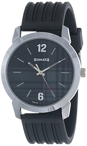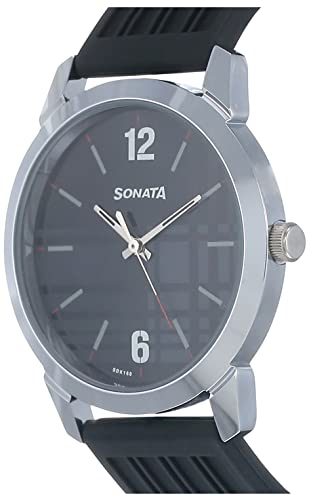 Sonata - ساعة يد من سوناتا سمارت بلايد انالوج بعقارب 77107SP04W/NN77107SP04W/NP77107SP04W بسوار اسود - مناسبة للرجال, أسود