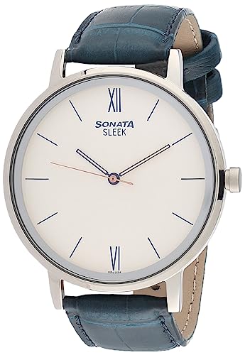Sonata - ساعة يد انالوج بعقارب سليك 2.0 للرجال بمينا ابيض وسوار ابيض وازرق من سوناتا، NM7131SL02/NL7131SL02, أبيض وأزرق