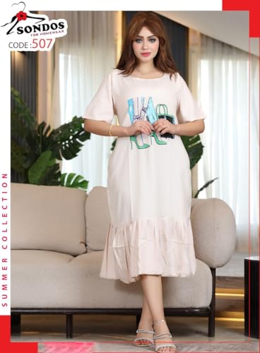 SONDOS FOR HOMEWEAR - فستان منزلي من سوندوس مصنوع من الفسكوز والقطن المعالج بالانكماش، يناسب وزن من 60 كجم إلى 90 كجم