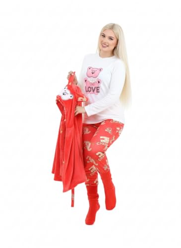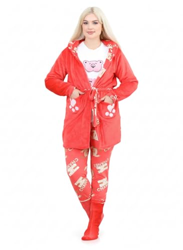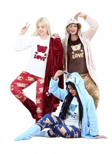 SONDOS FOR HOMEWEAR - طقم بيجامة وروب شتوي نسائي فاخر 5 قطع من سندس (Sondos) - قطيفة هايدي مبطنة دافئة - روب بقلنسوة (كابيشون) بشكل دب وأذنين - مقاس من 60 كجم الى 90 كجم - كود 2036