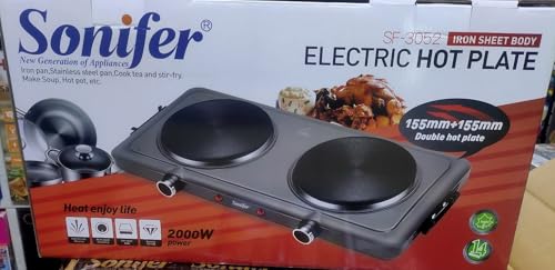 Generic - سخان كهربائي للطهى مزودج 2 عين من سونفير بطلاء مانع للالتصاق وحماية من الحرارة الزائدة بقدرة 2000 وات مع 5 مستوى طاقة للطبخ لوح تسخين سريع sf 3052