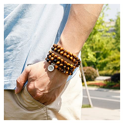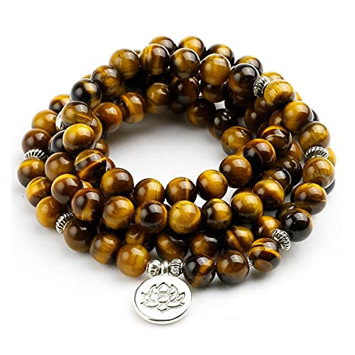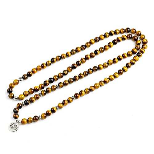 Generic - عقد مصنوع من 108 حجر عين النمر الطبيعي درجة A اوم بوذي مناسب كسوار يوجا 8 ملم اكسسوار للرجال والنساء من سونجوا (لون المعدن: بودا شارم)