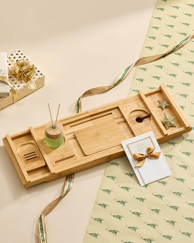- 【تخزين متعدد الاستخدامات】توفر صينية حوض الاستحمام هذه مساحة للكتب والتابلت والموبايلات والفوط والأكواب والشموع المعطرة وأكثر من ذلك. مثالية للاسترخاء في الحمامات في الخريف أو الشتاء مع كل ما تحتاجه في متناول اليد