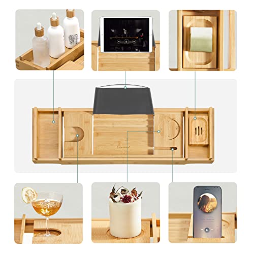 SONGMICS - صينية حمام من الخيزران قابلة للتمدد وقابلة للتعديل مع حامل أكواب وحامل صابون ومسند للكتب مقاس 75 سم -1.09 م × 4.5 × 23 سم (العرض × الارتفاع × العمق) موديل BCB88Y من سونج مايكس