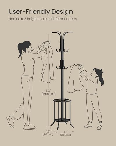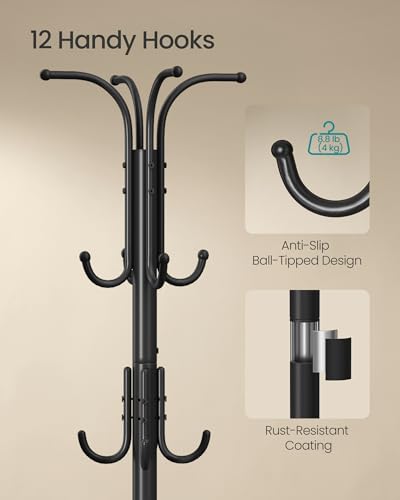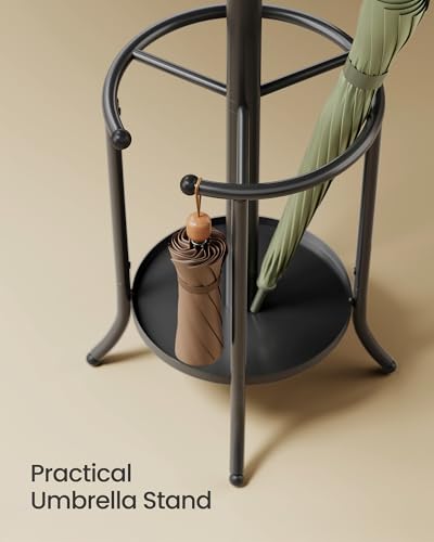 SONGMICS - سونج مايكس رف معطف قائم بذاته مع حامل مظلة معدني 12 خطاف للمدخل والرواق وغرفة المعيشة النوم لون اسود حبري URCR011B01
