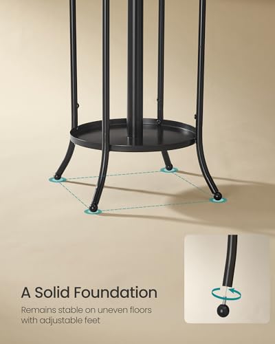 - [ثبات معزز] توفر الأرجل الأربعة القابلة للتعديل على شكل كرة لرف المعاطف هذا ثباتًا إضافيًا، مما يضمن بقائه متوازنًا حتى على الأرضيات غير المستوية قليلاً