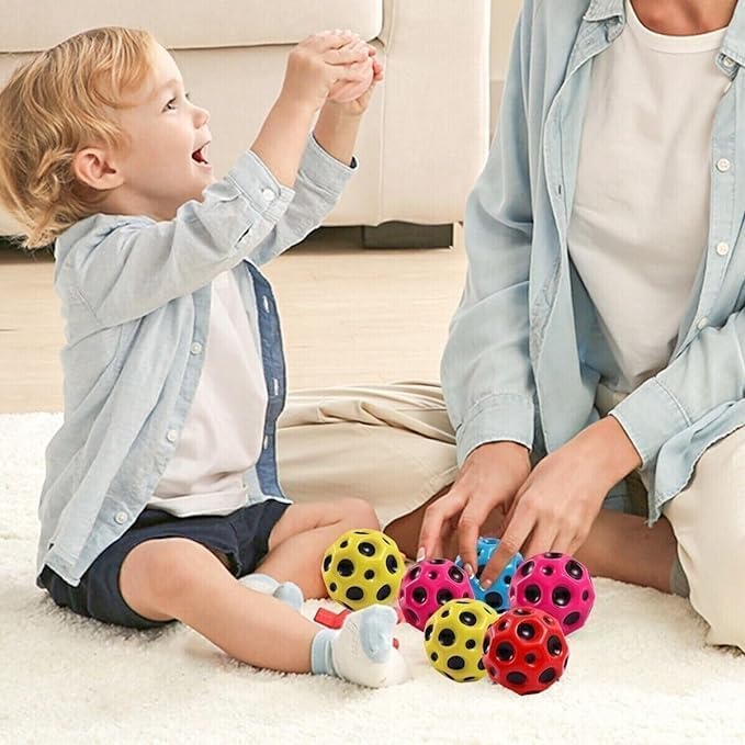 - مواد عالية الجودة: التصميم الخارجي للعبة يتضمن فتحات صغيرة ومادة البولي يوريثين عالية المرونة مع مقاومة للتشوه، مصنوعة من مواد عالية الجودة ومتينة للغاية. يمكن للكرة المطاطية ذات الطابع الفضائي تحمل الارتداد المتواصل، للألعاب الرياضية واللعب في الأماكن المغلقة وفي الهواء الطلق.