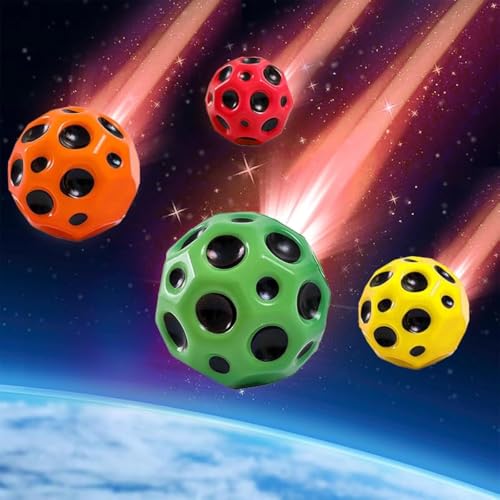 songyea - مجموعة من 4 كرات على شكل قمر من سونجيا، كرة مطاط للارتداد العالي، كرة فضائية، كرات نطاطة بنمط الكواكب، كرة فلانكي 7 سم، كرة نطاطة للأطفال، كرة عالية الارتداد، كرة بنمط لافا