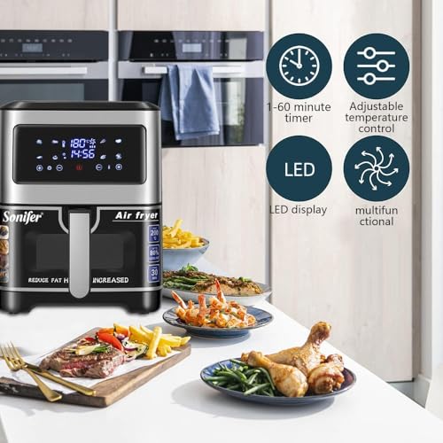 Sonifer - قلاية هوائية كهربائية SF-1028 بشاشة ال اي دي تعمل باللمس من سونيفر، سعة 6.5 ل