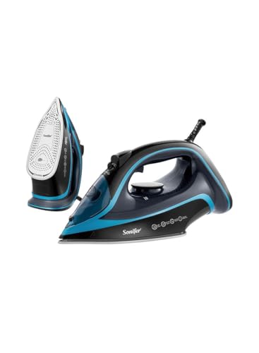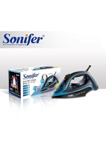 Sonifer - مكواة بخار كهربائية مسطحة جافة غير لاصقة بقدرة 2400 وات من سونيفر، لون أزرق SF-9113B