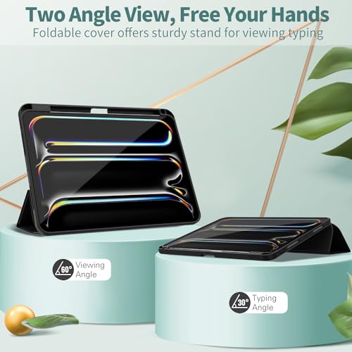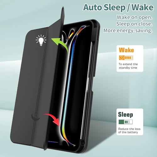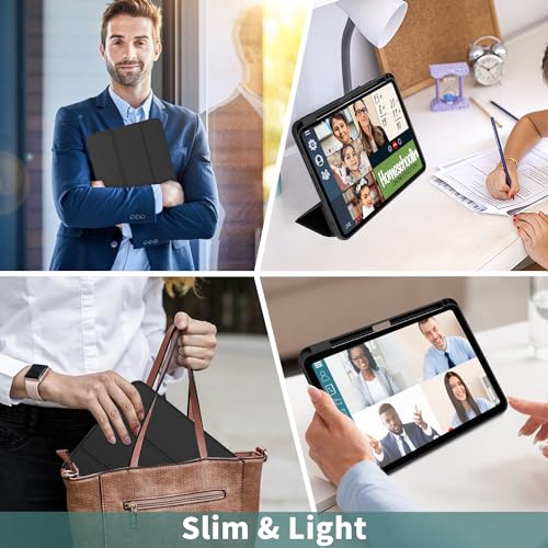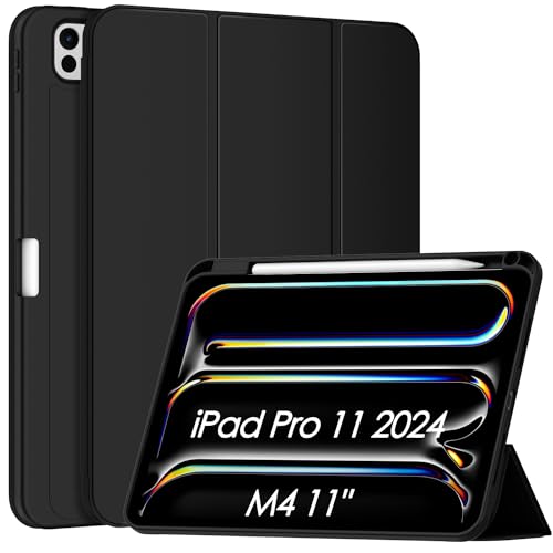 Sonlaryin - حافظة سونلارين لجهاز ايباد برو 11 انش 2024 M4 مع حامل قلم ثلاثي الطي جراب خلفي من البولي يوريثين الحراري مضاد للصدمات يدعم ابل USB C خاصية التنبيه السكون أسود