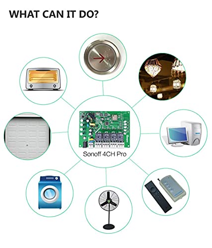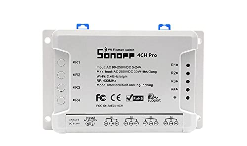 SONOFF - سونوف 4 قنوات برو R2 سمارت واي فاي/ار اف سويتش 4 مجموعات، يعمل مع امازون اليكسا، مساعد جوجل