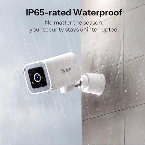 SONOFF - سونوف كاميرا مراقبة خارجية CAM-B1P، رؤية ليلية ملونة 2K HD، رؤية بانورامية 180 درجة، كشف وتتبع البشر بالذكاء الاصطناعي، مقاومة للطقس IP65، صوت ثنائي الاتجاه، تعمل مع منصات المنزل الذكي