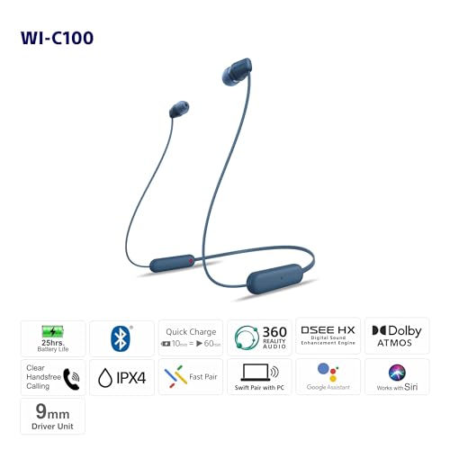 Sony - سوني مستلزمات العودة إلى المدرسة: سماعة أذن مع ميكروفون موديل MDRZX310AP لون أسود + لاسلكية WI-C100 أزرق فوق الأذن
