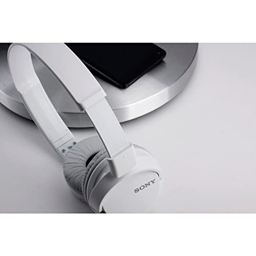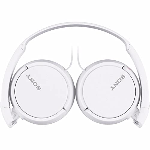 Sony - سماعة رأس سلكية للموبايلات الذكية مع ميكروفون من سوني، لون أبيض، صوت باس قوي، مقاس واحد، MDR-ZX110AP