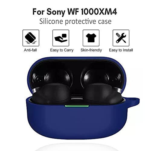 Generic - حافظة من السيليكون لسماعات سوني WF-1000XM4 اللاسلكية تتميز بالمتانة ومقاومة للسقوط والصدمات كما توفر الحماية لجسم السماعات بالكامل وتدعم الشحن ومزودة بحلقة مفاتيح ازرق رأس
