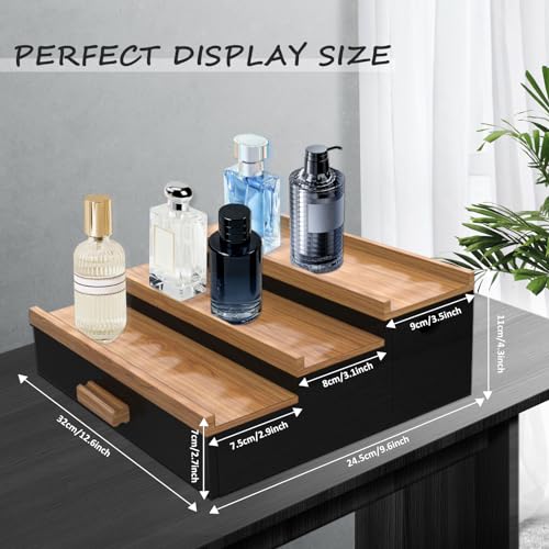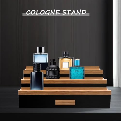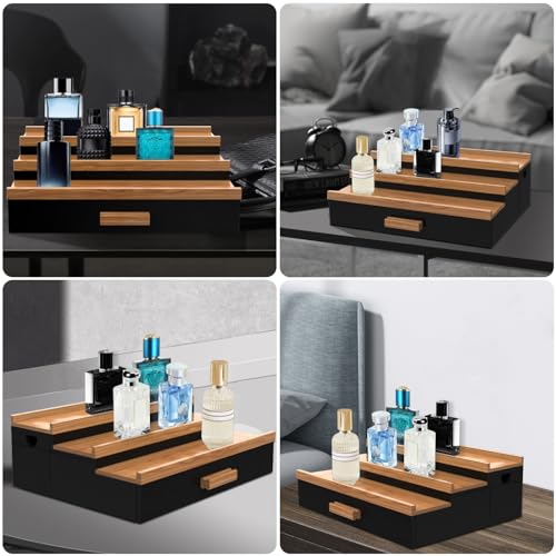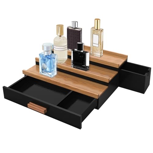 SOOKU - منظم كولونيا خشبي من سوكو للرجال والنساء، 3 طبقات من حامل العطور المرتفع مع درج، منظم العطور ومنصات عرض التخزين، ديكور غرفة الرجال، أفكار هدايا عيد الحب وعيد الميلاد