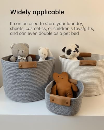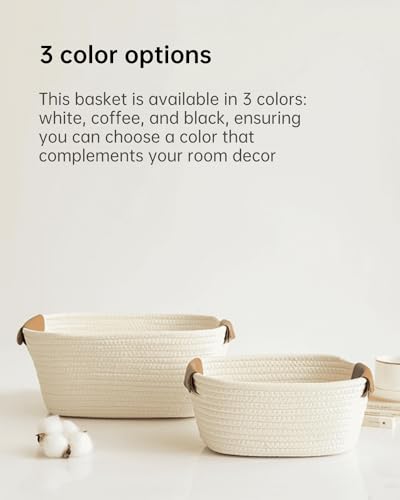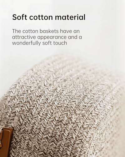 SOORXIEIN - سلة كبيرة من القطن المنسوج من سوركسين مع مقبض من جلد صناعي، منظم هدايا وألعاب وملابس للأطفال، سلة تخزين لغرفة المعيشة والحمام وغرفة الاستحمام، وغسيل الملابس، لون أبيض