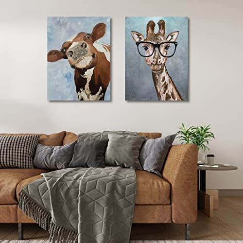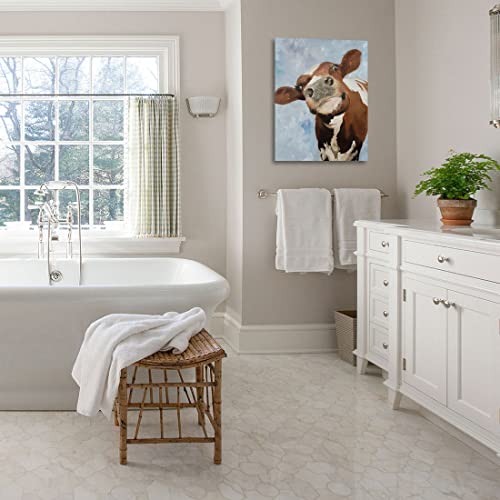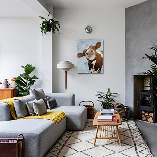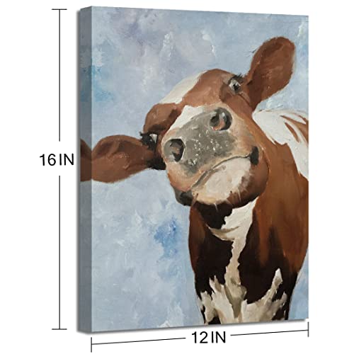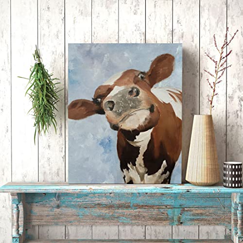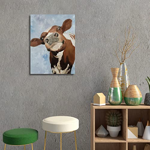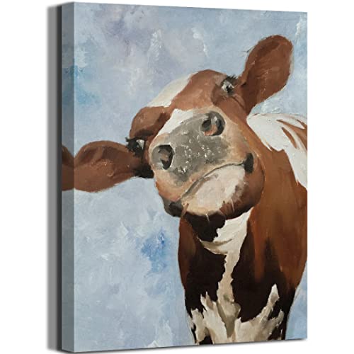 SOOTHAN - تابلوه حائط ريفي قماش بطبعة ابقار مضحكة من سوثان، بوستر فني بنمط حيوانات بيت المزرعة لديكور غرفة النوم والحمام والمكتب، مشدود باطار وجاهز للتعليق، 12×16 بوصة، متعدد الألوان