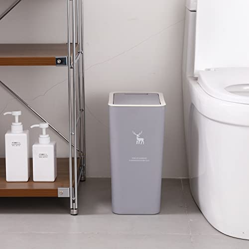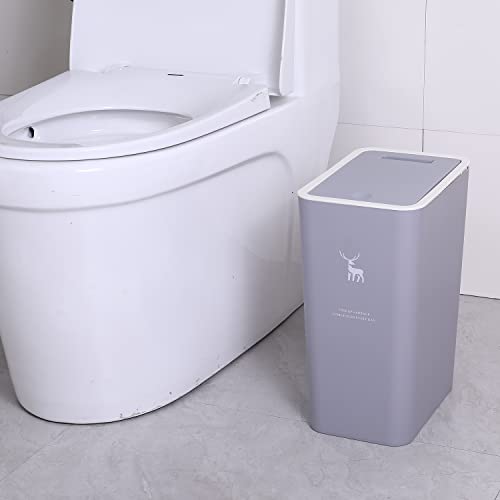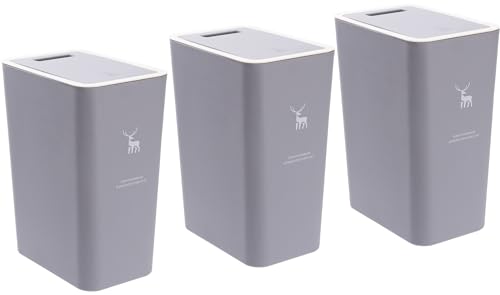 Sooyee - صندوق قمامة للحمام بغطاء من سويي، 3 قطع، سعة 14 لتر، رمادي، بلاستيك، بالضغط على الأعلى