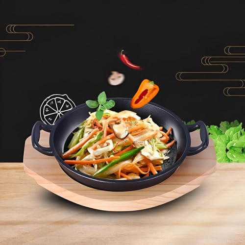 Generic - اداة طهي متطورة - مقلاة غير لاصقة مع قاعدة خشبية فاخرة، مصممة لتسخين سلس ومتساوي وعرض طاولة انيق (مقاس 22)