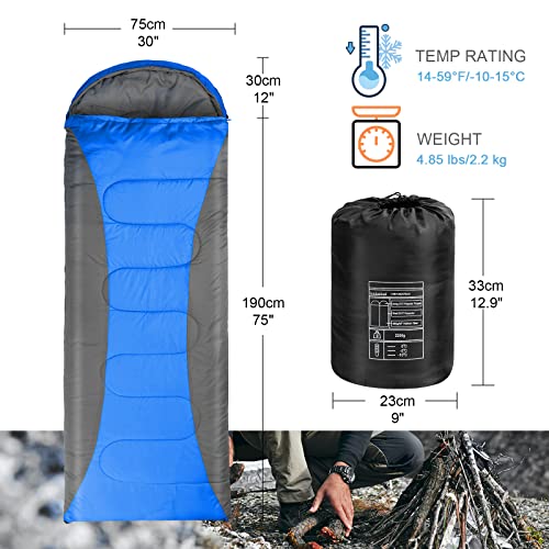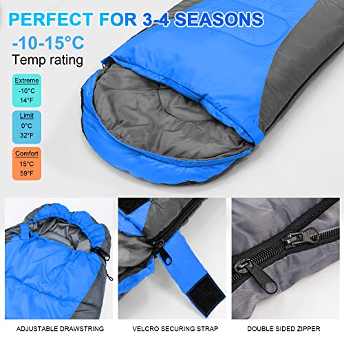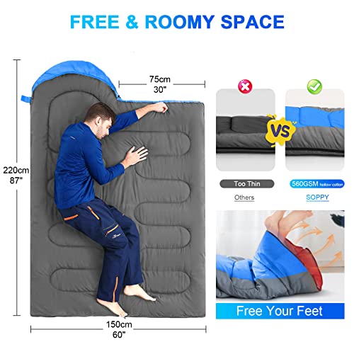 SOPPY - كيس نوم للبالغين بوزن 2.2 كجم من سوبي، كيس نوم خفيف الوزن ومناسب للفصول الاربعة 210T، كيس نوم للتدفئة مقاوم للماء مع كيس ضغط، 560 جرام لكل متر مربع، معدات نوم وشنطة سفر للمشي والسفر والتخييم