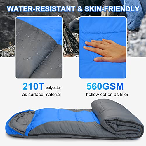 - 【متينة وجيدة التهوية ولطيفة على البشرة】مصنوعة من البوليستر 190T كمادة سطحية وقطن مجوف 560 غرام لكل متر مربع كحشو، كيس النوم ناعم للغاية ومريح ولطيف على البشرة ومقاوم للماء. إنها واسعة بشكل لا يصدق لأي شخص بالغ أو طفل. من السهل الدخول والخروج والدوران للعثور على وضع نوم مريح. يبقى السحاب مغلقاً، والحشو المخملي يعني أنك ستنام مثل الطفل.
