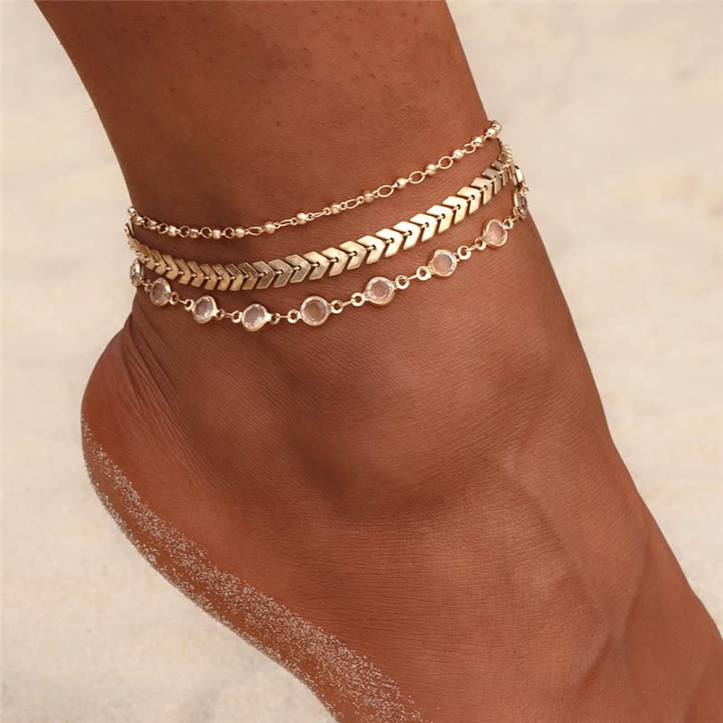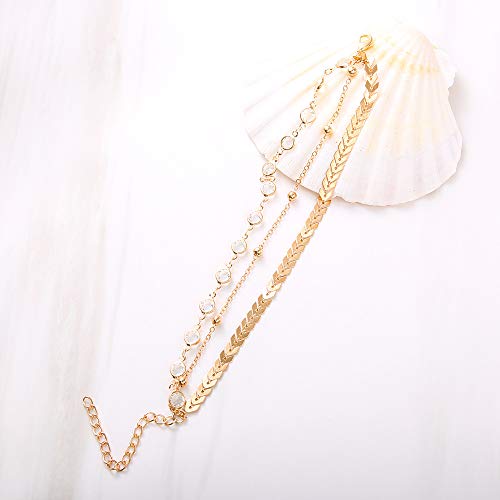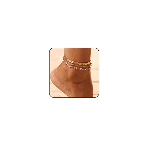 Sora Tuki - خلخال كاحل ذهبي للنساء من سورا توكي فضي مقاوم للماء الخرز متعدد الطبقات بشكل قلب لؤلؤي ألماسي للشاطئ مجوهرات صيفية صنع النحاس دون استخدام أحجار كريمة