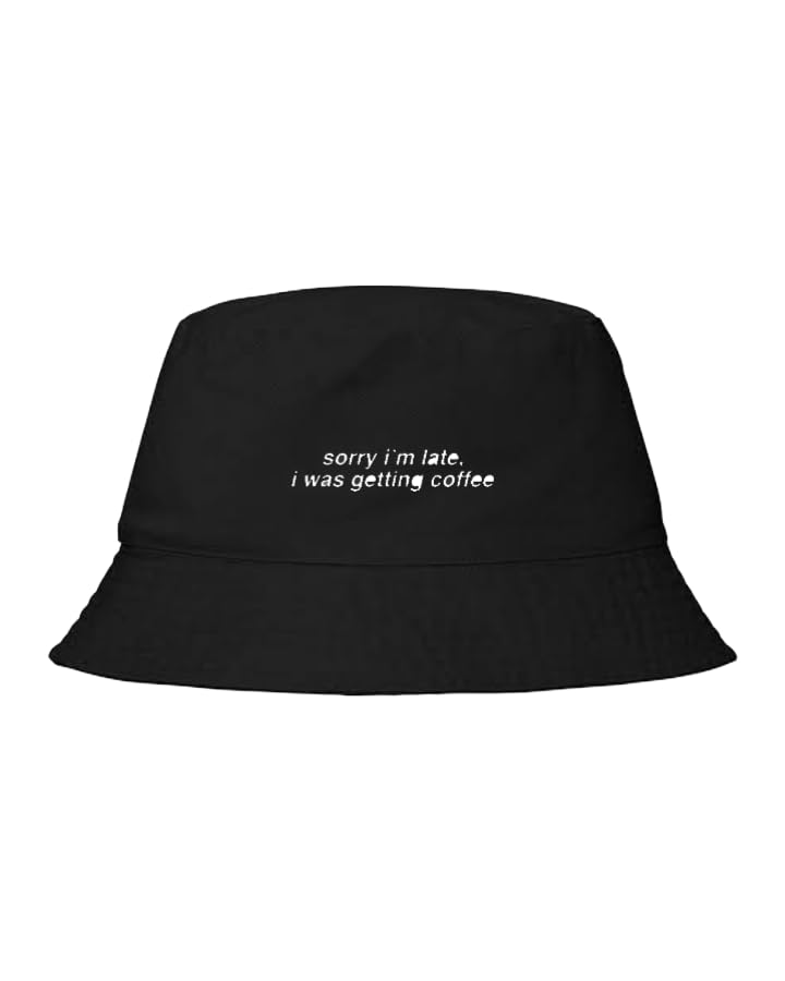 Generic - كاب بيسبول سادة للجنسين مطبوع عليه عبارة «Sorry i'm late. i was getting coffee لون أسود