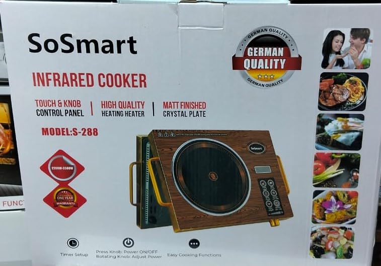 Generic - موقد كهربائي يعمل بالاشعة تحت الحمراء مزود بشاشة ديجتال رقمية من سوسمارت بقدرة 3500 وات مع 11 مستوى طافة للطبخ بعمل باللمس مناسب لجميع الحلل والمقالى مزود ب2مقبض عازل للحرارة- s288