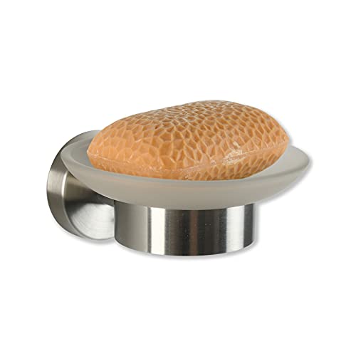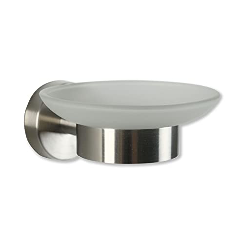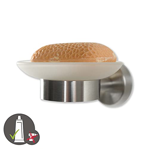 - الجودة - حامل صابون مصنوع من الفولاذ المقاوم للصدأ عالي الجودة مع زجاج ساتان - فضي غير لامع - مقاوم للصدأ - سهل التنظيف - للصق أو الحفر.