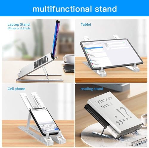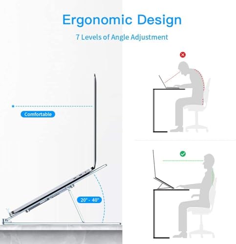 sososo - حامل لاب توب قابل للتعديل للمكتب وسادة لاب توب مبردة ومهواة من الألومنيوم لأجهزة ماك بوك اير برو وديل اكس بي اس وأجهزة أخرى بحجم 10 إلى 15.6 بوصة وأجهزة تابلت واي باد من سوسوسو، فضي