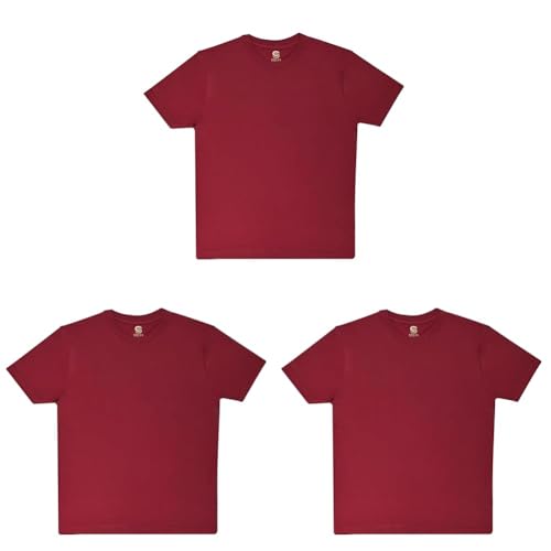Sotex - تيشيرت رجالي باكمام قصيرة ورقبة دائرية ضيقة من سوتكس، لون بورغندي. مقاس L (عبوة من 3 قطع)