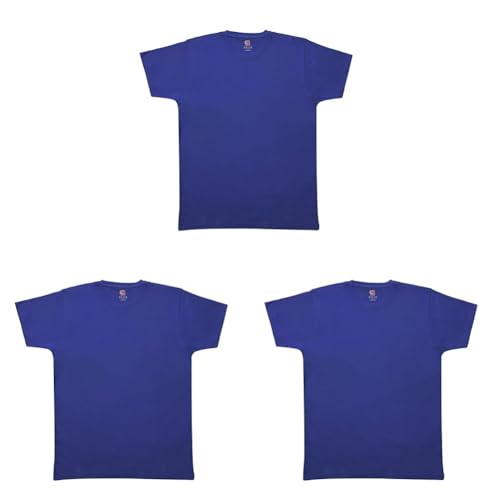 Sotex - تي شيرت للرجال من سوتكس، كم قصير، رقبة دائرية، سادة، رويال، S (عبوة من 3 قطع)