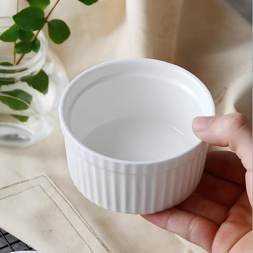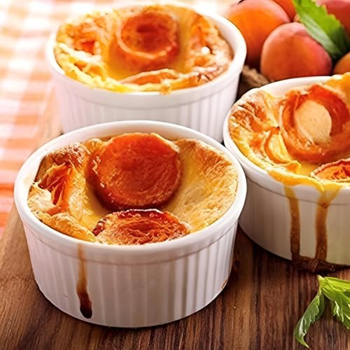 Generic - أطباق السوفليه - أوعية راميكين من الخزف الأبيض الأنيقة والعملية المصممة للخبز أو التقديم؛ رائعة لحصص فردية، آمنة للفرن وقابلة للغسل في غسالة الأطباق. (3 قطعه)